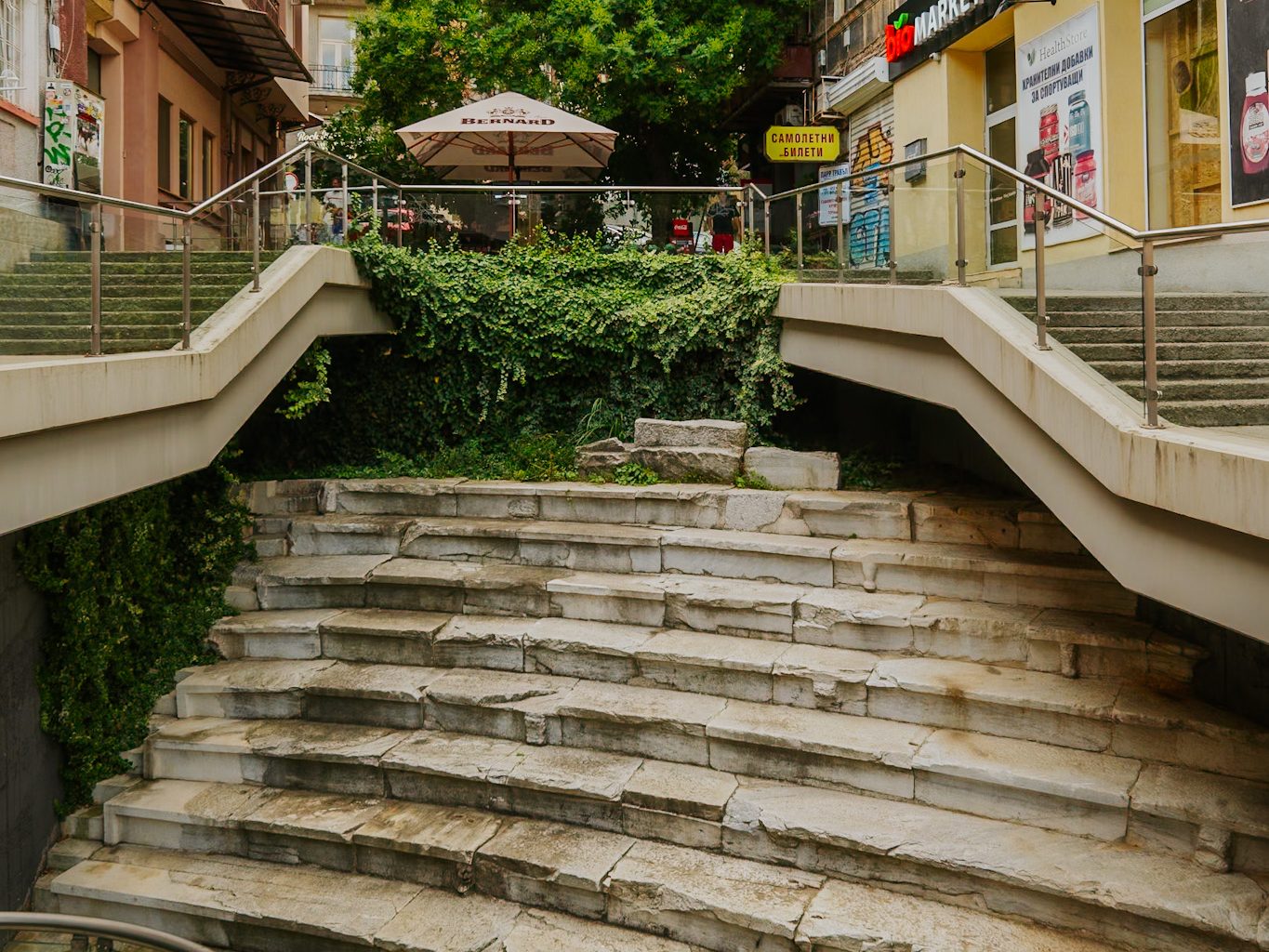 At the end of the main shopping street in the center of modern Plovdiv lies the incredible ruins of the Roman Forum of Philippopolis, where the center of the ancient city once stood. Built at the end of the 1st Century A.D, what used to be the gathering spot for all of the thousands of people that lived in Philippopolis is now ruins where stray cats roam and children play, underneath the brutalist style central post office.